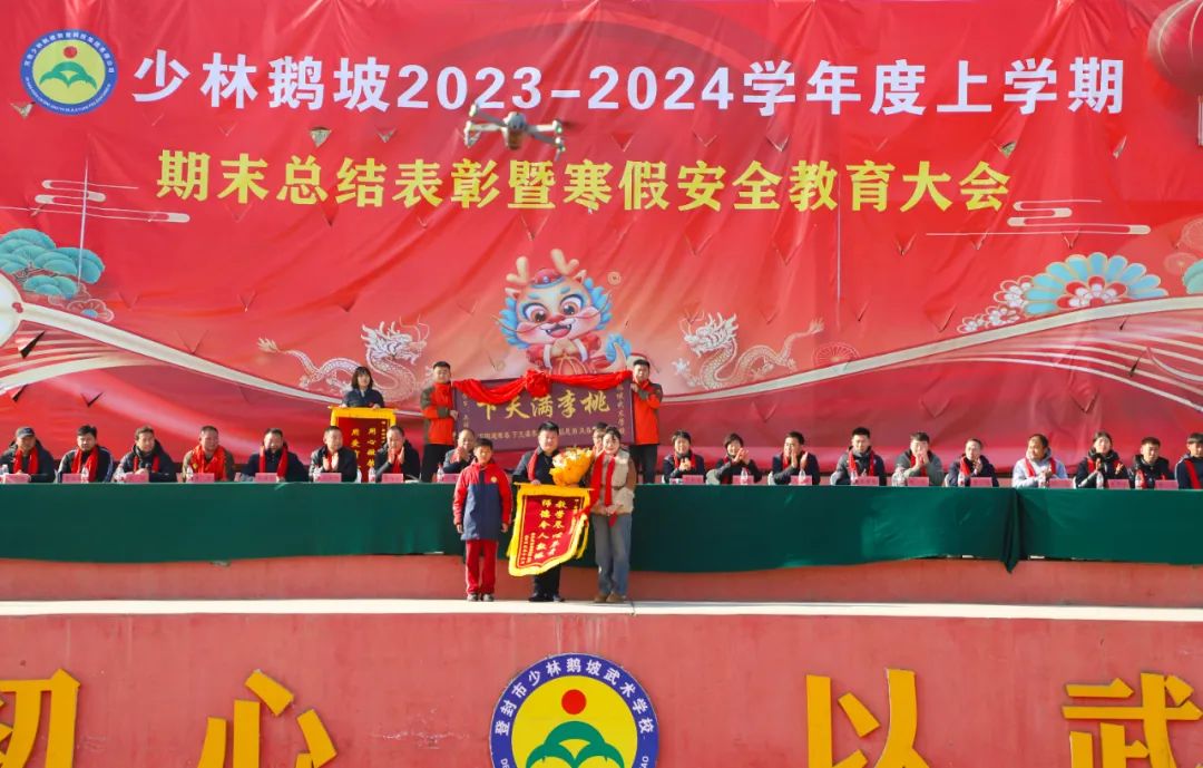 日月其邁,時盛歲新。2023年12月30日,這個承前啟后的重要節點,鵝坡武校在足球場隆重舉行少林鵝坡2023——2024學年度上學期期末總結表彰暨安全教育大會,全體師生們帶著一學期的收獲與喜悅,為本學期畫上一個圓滿的句號。