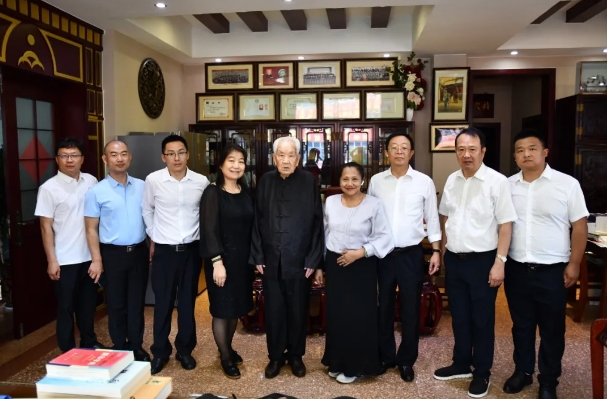 儀式結束以后,容慧校長一行在集團領導的陪同下,拜訪了鵝坡武校創(chuàng)辦人梁以全宗師,并參觀了鵝坡武校。