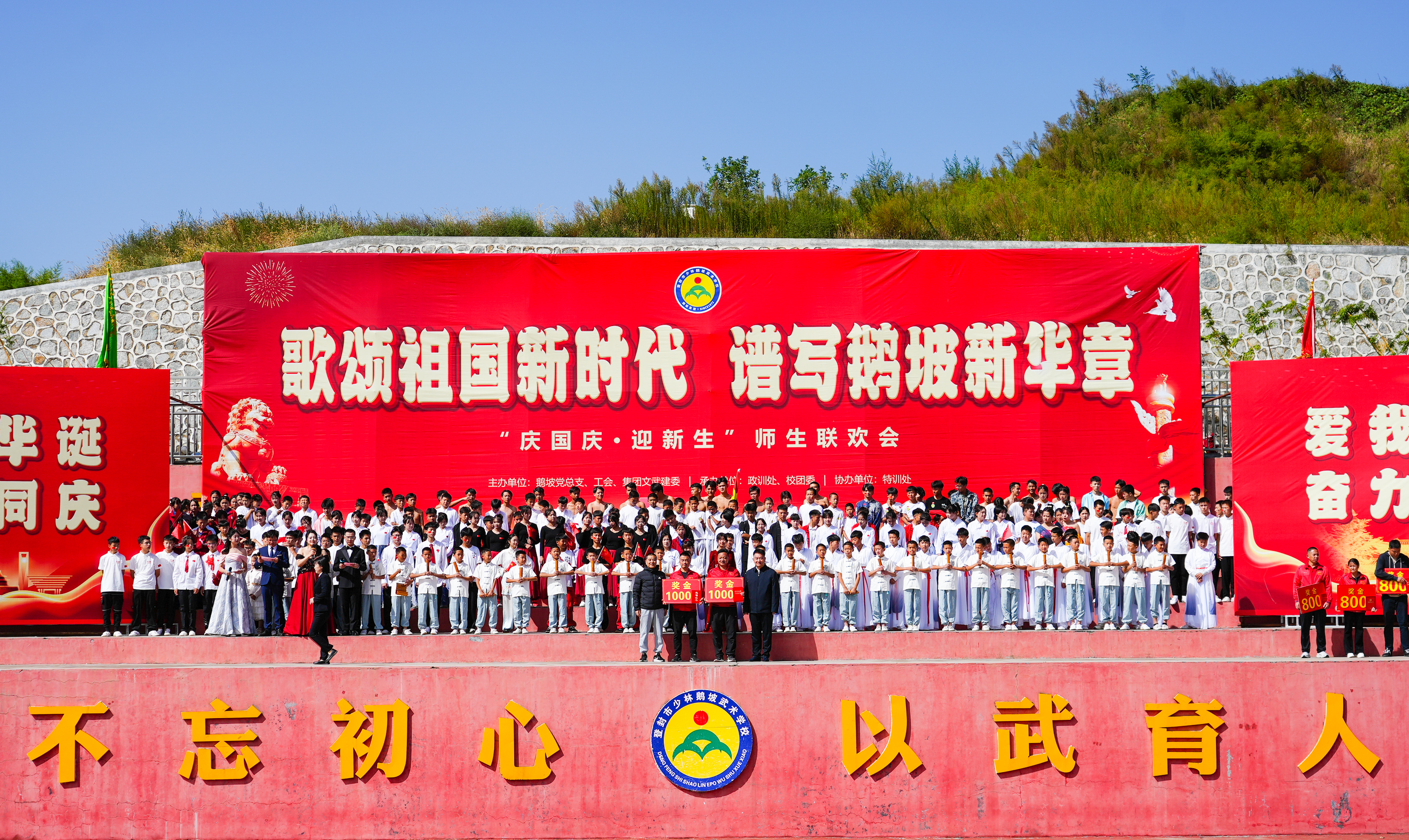 慶祖國華誕,賀盛世華章。10月1日上午,少林鵝坡武術學校在體育場隆重舉行“歌頌祖國新時代  譜寫鵝坡新華章”慶國慶迎新生師生聯歡會。鵝坡武校校長梁少宗、特聘專家聶建國、鵝坡集團副總經理田文奇等領導及全體師生參加活動。