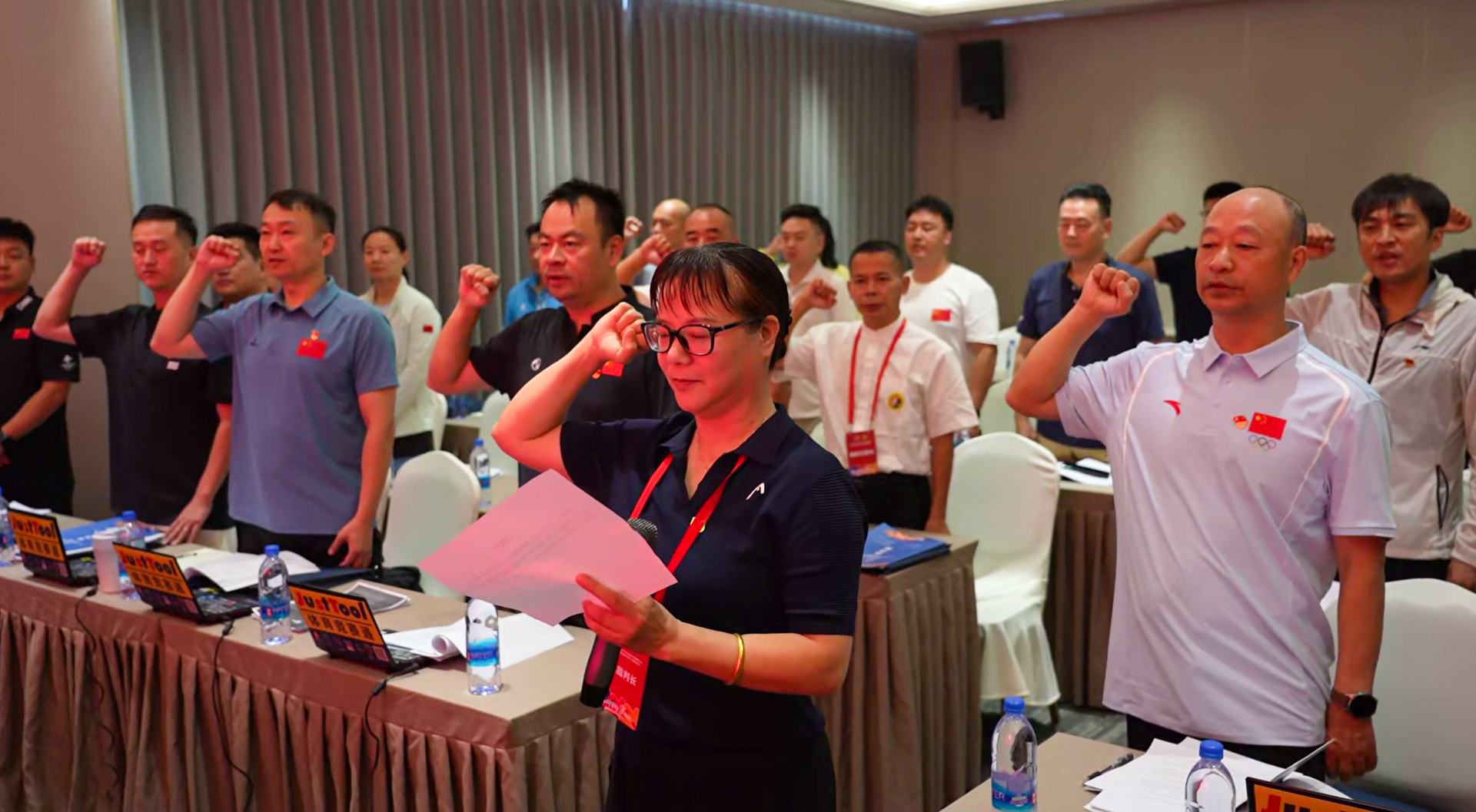 國(guó)家體育總局武術(shù)運(yùn)動(dòng)管理中心青少年活動(dòng)部主任、賽會(huì)秘書(shū)長(zhǎng)劉志華講話。她首先代表組委會(huì)向各位裁判員表示熱烈的歡迎,并簡(jiǎn)單介紹近年來(lái)青少部武術(shù)賽事發(fā)展的背景、形勢(shì)和工作情況,同時(shí),對(duì)裁判員執(zhí)裁工作提出要求。一是裁判員要堅(jiān)守政治原則,充分發(fā)揮黨支部戰(zhàn)斗堡壘作用,維護(hù)比賽的公平、公正、公開(kāi),以高尚的職業(yè)道德和全局意識(shí),確保比賽的權(quán)威性和公信力;二是全體黨員要敢于亮出黨員身份,當(dāng)好先鋒表率,踐行服務(wù)宗旨,接受群眾監(jiān)督,統(tǒng)一思想、凝心聚力,敢于擔(dān)當(dāng)、勇挑重?fù)?dān),堅(jiān)決完成聯(lián)賽執(zhí)裁任務(wù);三是要進(jìn)一步優(yōu)化完善各部門(mén)協(xié)調(diào)工作,做到“抓緊、抓細(xì)、抓實(shí)”,確保科學(xué)、安全、有序辦賽。