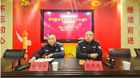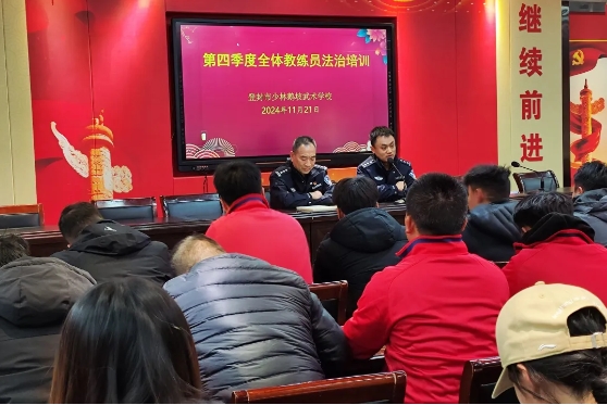 11月21日,鵝坡武校在黨建室召開全體教練員法治安全教育培訓(xùn)會(huì),特邀登封市公安局武管大隊(duì)副隊(duì)長(zhǎng)趙曦曦?fù)?dān)任主講嘉賓。通過(guò)專業(yè)的講解與指導(dǎo),全面提升教練員的法治安全意識(shí)與素養(yǎng),為學(xué)校打造更為安全、規(guī)范、有序的教育教學(xué)環(huán)境。