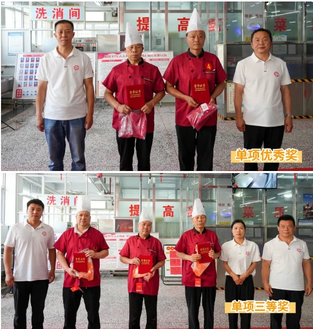 最終,綜合得分優異的選手脫穎而出,鵝坡武校校工會主席孟海鵬宣布本次比賽的最終成績。校領導為獲獎者頒發榮譽證書與獎品,以此激勵后廚團隊持續精進廚藝,打造更多營養美味的餐食。