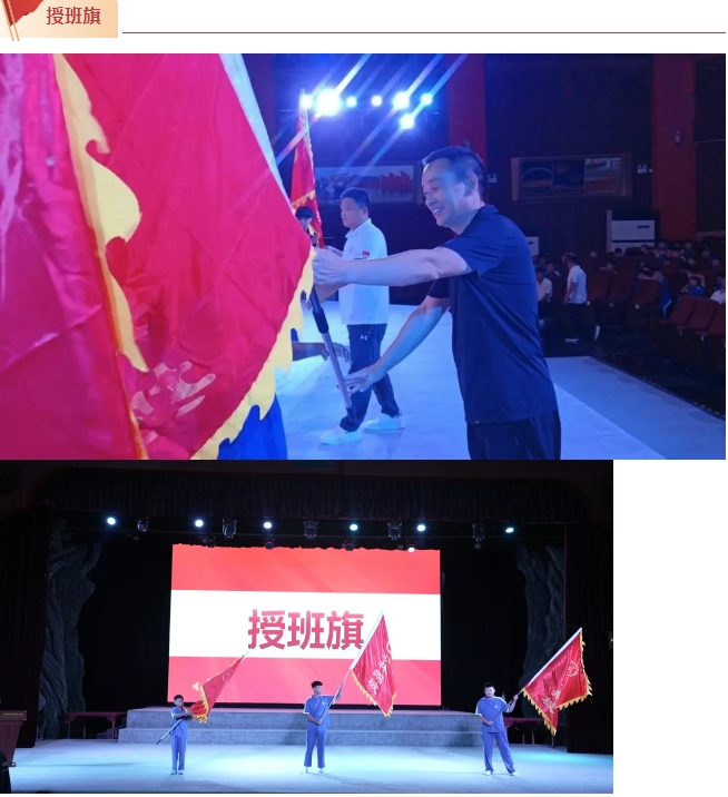 校領(lǐng)導(dǎo)分別為小學(xué)班組、初中班組和高中班組授班旗。旗幟是方向,是凝聚力的象征。接過(guò)這面旗幟,就接過(guò)了責(zé)任與榮譽(yù)。希望全體學(xué)員在這面旗幟的引領(lǐng)下,團(tuán)結(jié)奮進(jìn),勇創(chuàng)佳績(jī)。