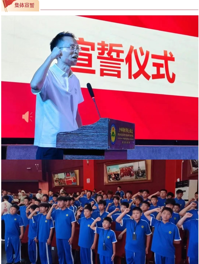 少兒處主任魏聽(tīng)召帶領(lǐng)全體學(xué)員莊嚴(yán)宣誓,“我志愿成為少林鵝坡武術(shù)學(xué)校暑假班學(xué)員!在此莊嚴(yán)宣誓:熱愛(ài)祖國(guó),尊師重道……為弘揚(yáng)中華武術(shù),強(qiáng)健自身體魄,努力奮斗!”鏗鏘誓言,擲地有聲。