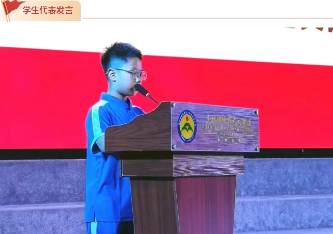 學(xué)生代表王梓墨表示,一定會(huì)好好學(xué)習(xí),刻苦訓(xùn)練,在武術(shù)習(xí)練中突破自我,讓父母放心,讓教練安心。