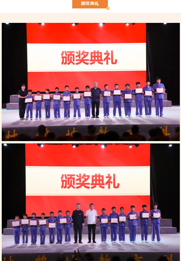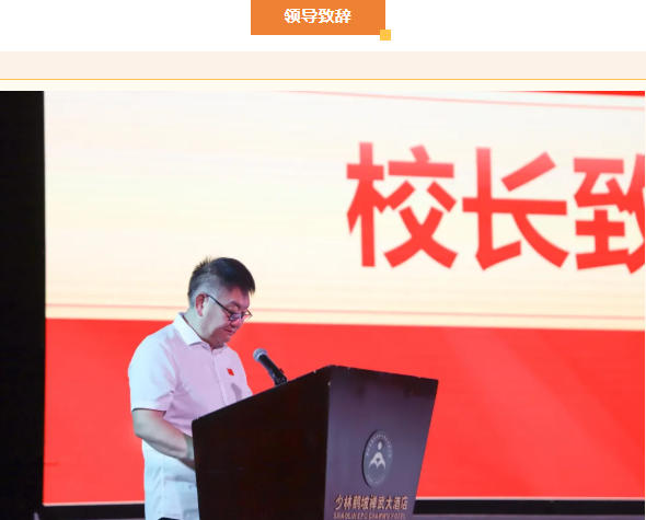 校長梁少宗發表熱情洋溢的致辭。他指出,一個多月來,同學們從剛入班時動作生疏,到如今能完整打出一套拳術,從怕苦怕累時偷偷抹眼淚,到訓練中主動喊出“我能行”,這份蛻變不僅是武術技能的提升,更是意志品格的成長。清晨六點的堅持、主動加練的較真,這些用汗水澆灌的"武功"才是最珍貴的收獲。梁校長感謝教練團隊把“武德為先”的理念,融進了每一次示范、每一句叮囑。結業不是終點,而是新征程的起點,他希望同學們帶著這個夏天學會的堅持與自律,銘記團隊并肩的吶喊,帶著這份“武德”精神,在未來的路上,披荊斬棘,溫暖待人,成長為更好的自己。