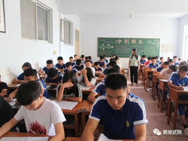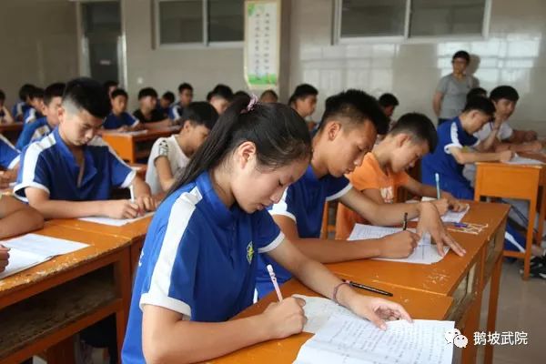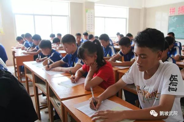 7月17日,鵝坡武院2017--2018學年度第二學期文化課期末考試再次舉行。初中部3500多名學生,分別在60多個考場接受測驗。