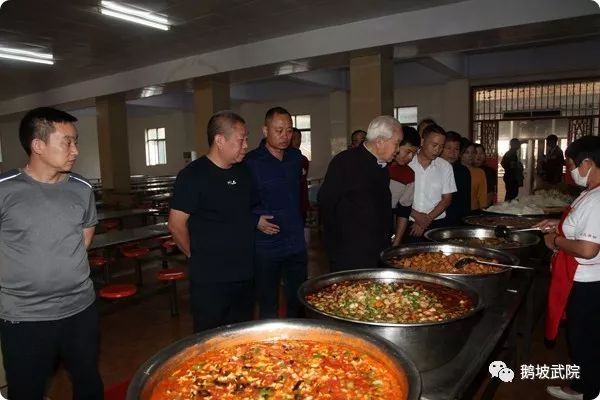 尊敬的創辦人、梁少飛總教練帶領校委會領導走進各個餐廳,查看節日的飲食安排。