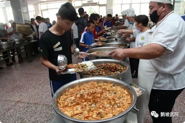 創辦人拿起勺子,過目已經成品的飯菜,了解節日的飲食調配狀況。當看到一道道豐盛的午餐時,滿意地微笑著,他叮囑餐飲師傅們,一定要確保每個學生吃上可口的節日美餐,給孩子們創造一個歡樂舒心的節日氣氛。