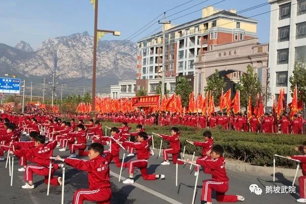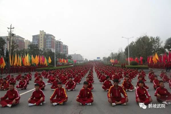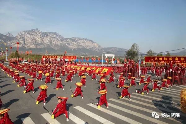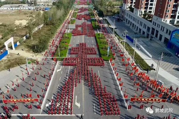 在禪武大道幾千名鵝坡弟子組成巨大的“少林功夫”四個漢字,場面震撼,呈現出少林武術浩浩蕩蕩波瀾壯闊的雄偉畫面。