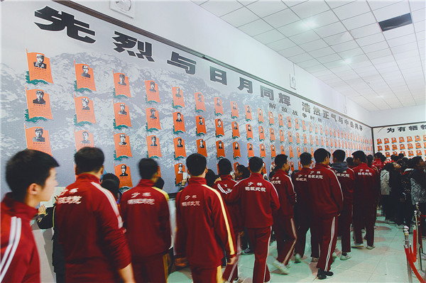 參觀烈士陵墓后,師生們走進烈士紀念館,瞻仰烈士照片,一幅幅革命英雄圖片撥動師生心弦。銘記革命烈士獻身于革命、不怕吃苦的英雄精神,深深認識自己身上肩負的歷史責任。