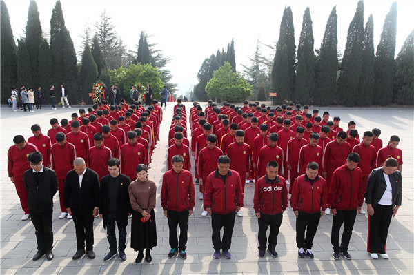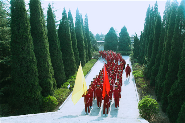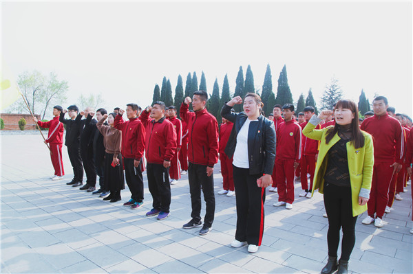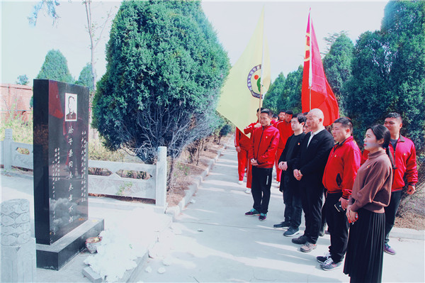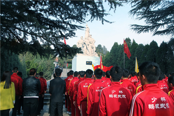 烈士陵園內,綠蔭蒼翠,莊嚴肅穆。師生們在烈士紀念碑前整裝肅立,懷著崇敬之心向革命烈士默哀致敬,表達對革命烈士的無限敬意與懷念。廣大黨團員還學習了皮定均司令豫西抗日戰爭的故事,并分別進行入黨和入團宣誓。