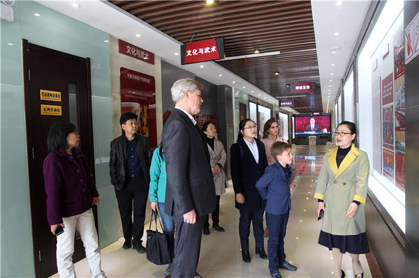 國家生態環境部宣教中心綜合室 牛玲娟主任, 國家生態環境部宣教中心 李原原、 靳增江同志,河南省生態環境廳宣傳教育中心 張東濤副主任,河南省生態環境廳宣教中心教育科辛建新科長,河南省生態環境廳宣教中心教育科彭輝副科長,鄭州市生態環境局宣教中心王令主任等,各級領導與岡特先生夫婦一同參加了生態教育活動,并參觀鵝坡校園。鵝坡武校副校長周洪多致歡迎辭。