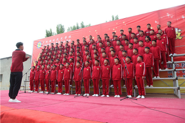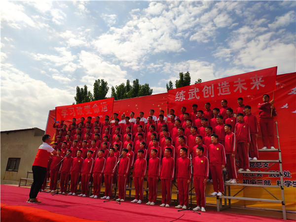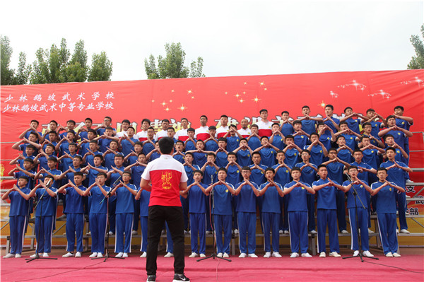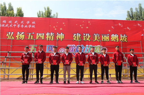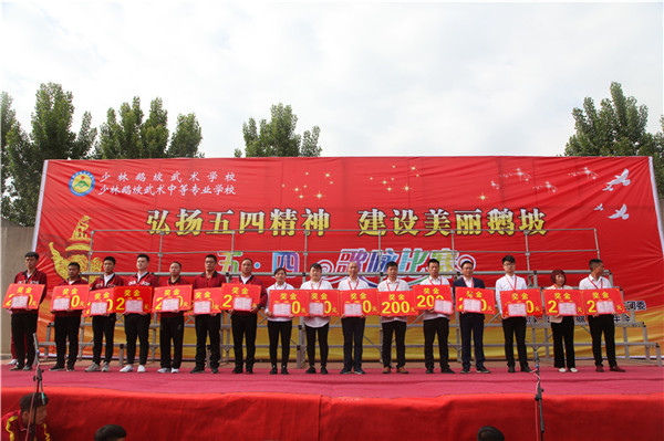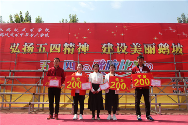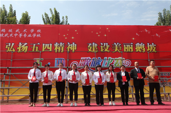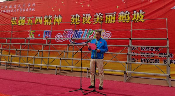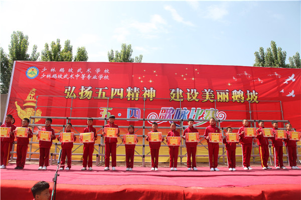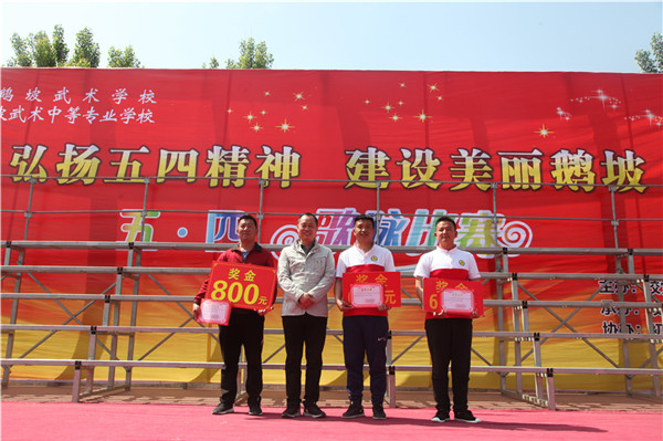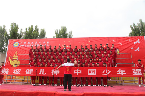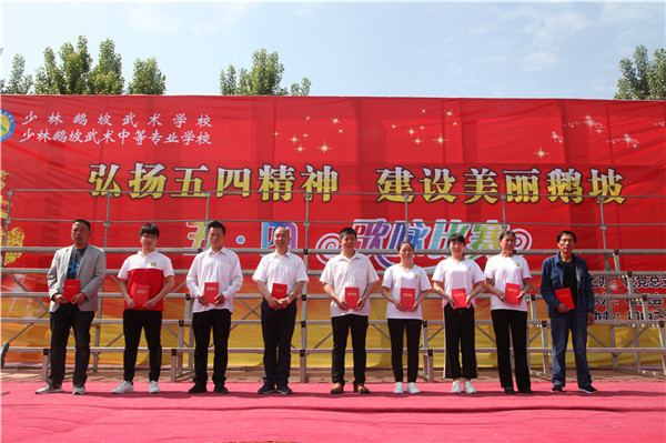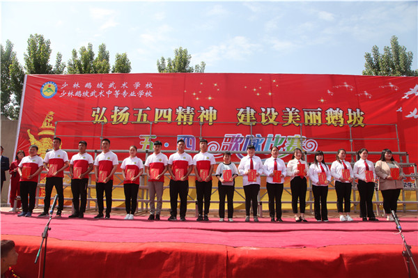 鵝坡武??偨叹毩荷亠w致辭。他說,100年前的五四運動,是一場偉大的愛國運動,是中華民族百折不撓、自強不息的生動寫照。五四運動猶如不滅的燈塔,“愛國、進步、民主、科學”的五四精神薪火相傳、歷久彌新,激勵中華民族從獨立自強走向偉大復興。我們紀念五四運動,舉行歌詠比賽,就是要發揚“五四”精神,唱響主旋律,展示鵝坡風采,激勵廣大師生,把個人前途與黨的事業、鵝坡武院的發展結合起來,增強歷史使命感和責任感,建設有溫度的學校,爭當有溫度的鵝坡人,為弘揚光大少林武術,振興體育事業,為鵝坡武院建設百年名校貢獻力量。