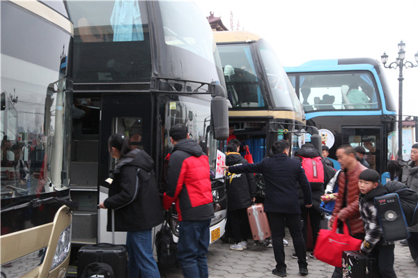 為保障學生和家長們順利回家,鵝坡武校在鄭州機場、火車站、高鐵站等場所設(shè)置了服務(wù)接待點,組織了近百輛大客車迎送學生和家長。