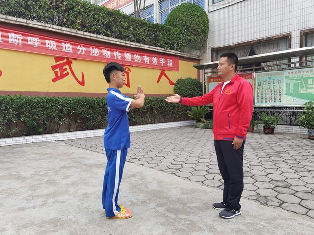 在校園里,學生與教練見面,都要用“抱拳禮”以示敬重。抱拳施禮是武術教育活動中的重要禮節,也是學生日常生活中倡導的禮節,體現了學生們的道德品質和文化修養。