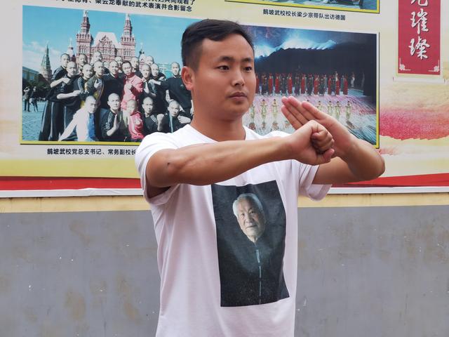 鵝坡武校優秀教練員的標準抱拳禮"學拳以德行為先”,武術“抱拳禮”就是“以德統武”、“德武合一”的禮節來制約人的行為。