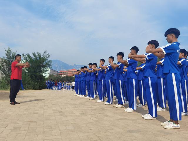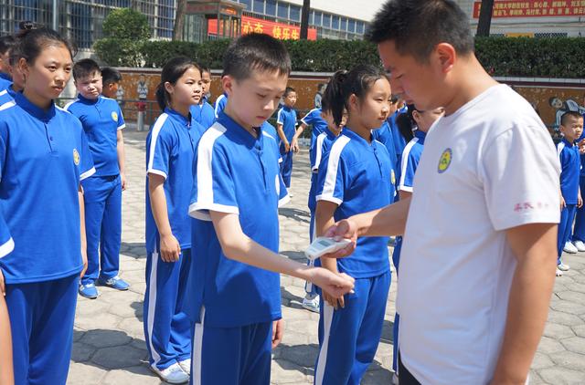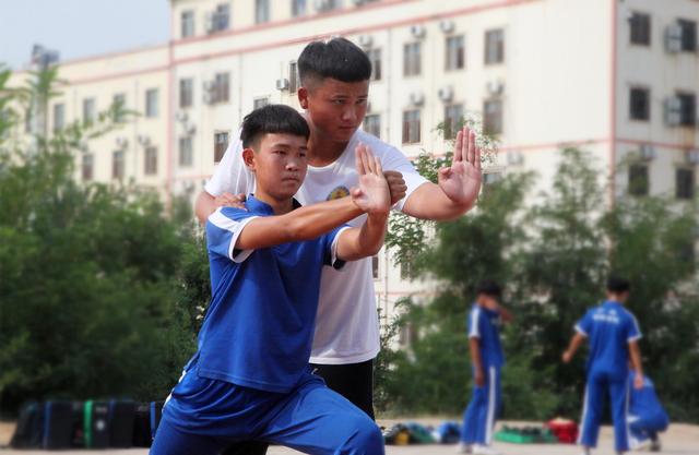 鵝坡武校教練員課前給學(xué)生測量體溫