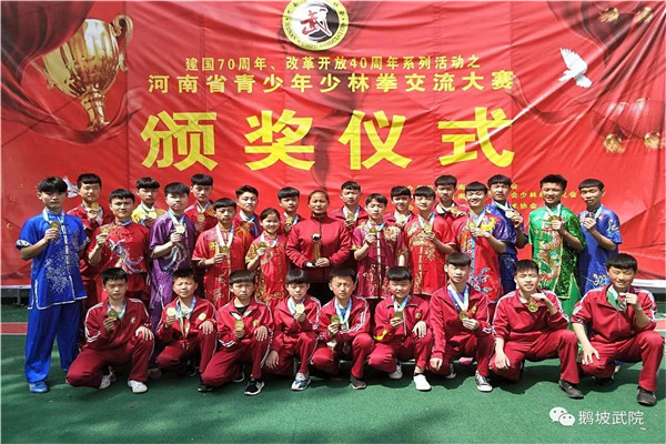 學(xué)校在國際、國內(nèi)重要武術(shù)比賽中榮獲獎牌6000余枚,其中金牌4500余枚。先后多次蟬聯(lián)全國武術(shù)少林拳大賽、河南省少林拳大賽、中國鄭州國際少林武術(shù)節(jié)少林拳大賽等重要賽事冠軍。培養(yǎng)出安建超、李鴿等世界級、國家級冠軍,并向解放軍隊、北京隊等武術(shù)專業(yè)隊輸送大批優(yōu)秀運動員。