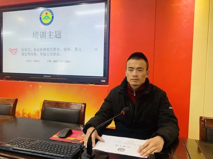 鵝坡武校演藝處副主任陳朝飛,從反體罰以及如何進行依法執教兩方面做了詳細講解。通過案例分析、法律條文的學習,鼓勵大家爭做“五零教練”,即零體罰、零受傷、零流動、零投訴、零追責。他要求教練員身為教育工作者,必須做到依法執教,體罰是把教育過程、教育手段簡單化,它往往鑄成一種錯誤的行為模式,其消極影響是難以消除的。