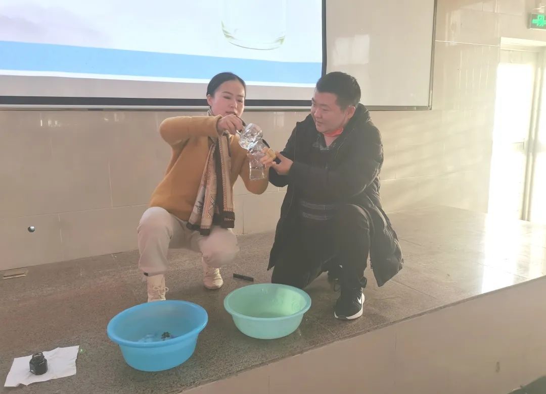 郝老師親自為大家演示瓶子灌水實驗,告訴大家人的病理性行為是對環境的適應和應對。立德樹人是教育的根本任務,想讓孩子成長,孩子的老師先成長(榜樣的力量),學校一定要營造一個良好的育人環境,讓學生在這樣的環境中更健康、更全面的發展。郝老師還帶領大家一起做冥想放松練習,正念冥想對快速減壓有效;對身體健康有效;可以增強人的免疫力,緩解壓力,優化大腦結構,提升注意力和感知能力。