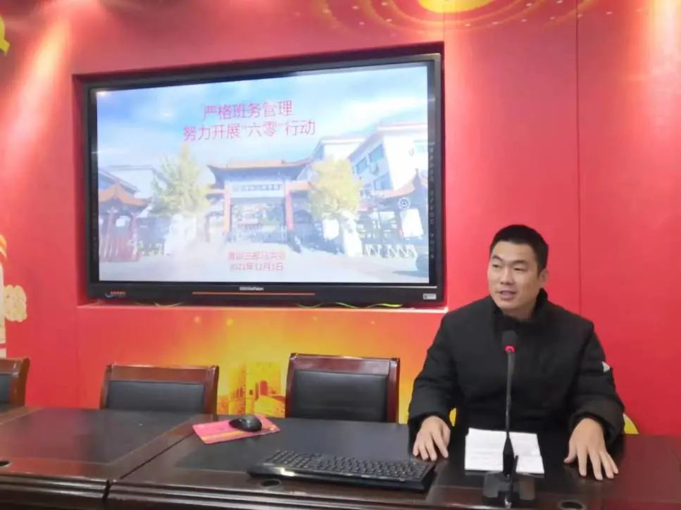 鵝坡武校武教處副主任劉治國,帶領教練員們學習了以下幾方面。他指出要合理有效的安排每天的工作計劃,教練員要注重自身儀容儀表、更要做到言行文明,這是一個人自律的重要表現。他提出要注意學生用電安全,以及確保學生沒有私藏、攜帶打火機及管制刀具等威脅生命安全的違禁物品。他強調教練員一定要堅決執行學校對六零行動的工作要求,即零手機、零煙火、零欺凌、零失盜、零垃圾、零吵鬧,從根本上杜絕以上不良行為的發生。