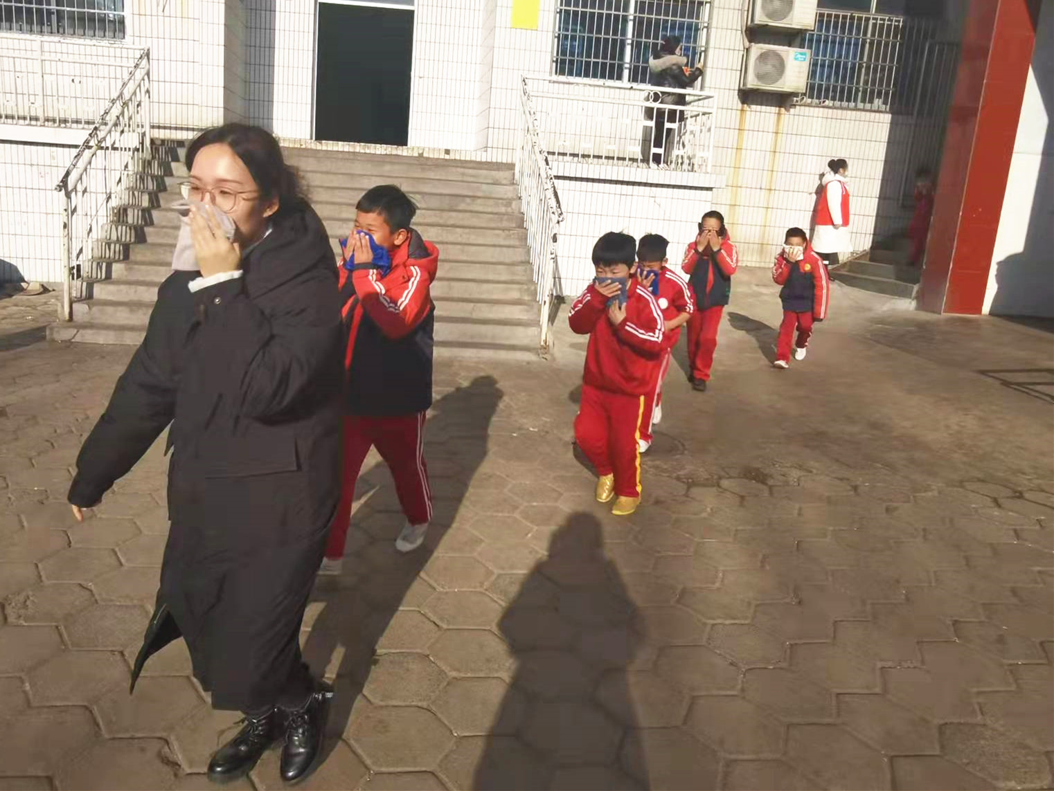 哨聲響起,消防疏散演練開始了。在教師帶領(lǐng)下,孩子們用濕毛巾捂住口鼻,彎著腰小步快走,沿著疏散路線,有序地撤離至操場(chǎng)。班主任老師清點(diǎn)人數(shù),確定全體人員已撤離,及時(shí)上報(bào)相關(guān)負(fù)責(zé)人,并對(duì)本次演練做了總結(jié)教育。隨后安保部部長(zhǎng)梁仁杰,為大家講解了滅火器使用方法及滅火流程。