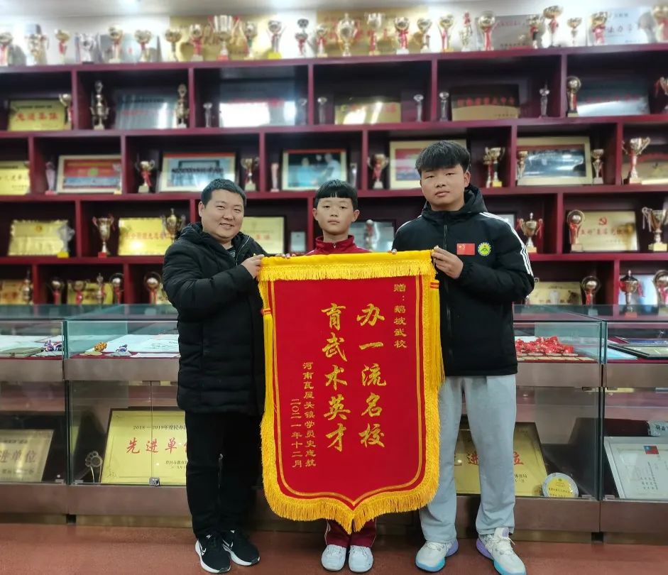 歲月忽已近,冬意正闌珊。2021年12月7日是一個特別的日子,鵝坡武校六(8)班學生家長將印有“辦一流名校 育武術英才”和“言傳身教指導有方 關愛有加勝似親人”的兩面錦旗寄到李維凱教練手中,以此感謝學校及教練老師對孩子無微不至的照顧和關愛。一面錦旗、一句感謝不僅是對教練老師工作最大的肯定,更是對鵝坡武校教育教學工作的高度認可與大力支持!