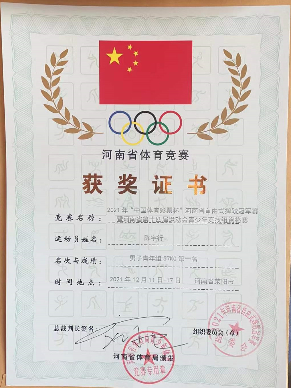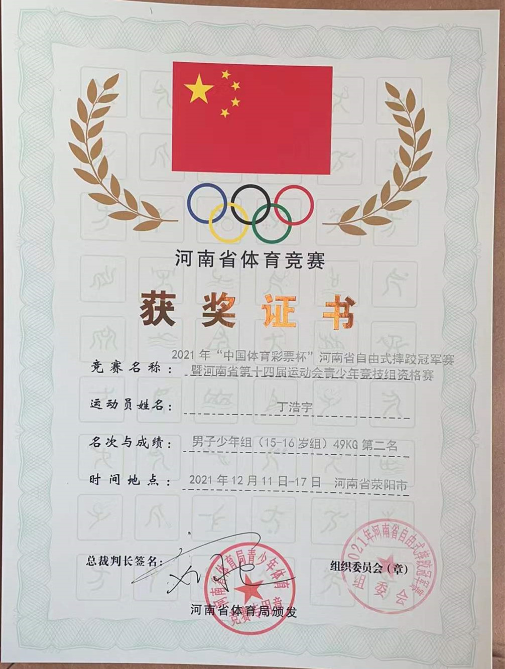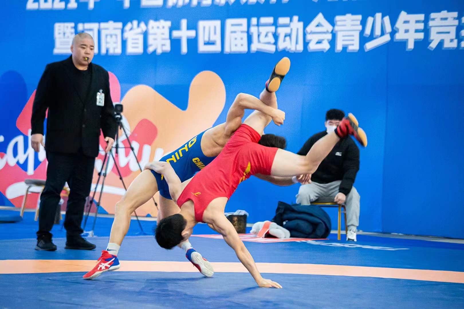 2021年河南省自由式摔跤冠軍賽暨省十四屆運動會資格賽于12月11日至12月17日,在鄭州滎陽市舉行。來自全省16個地市500多名運動員參賽。鵝坡武校青訓三部代表隊5名運動員參加了此次比賽。