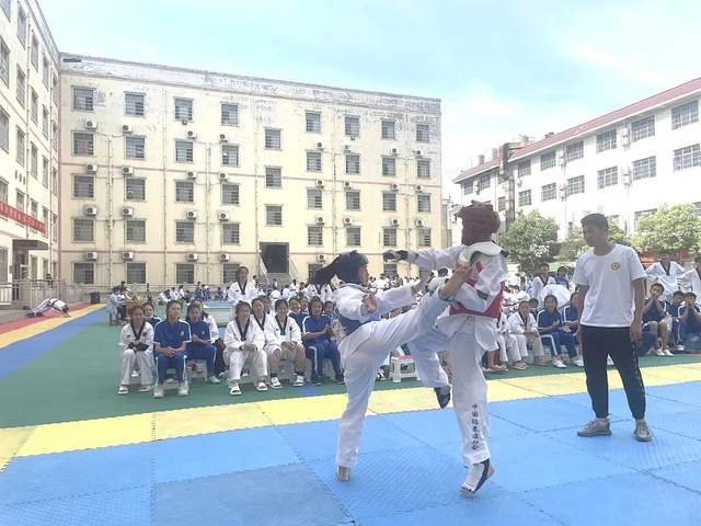 跆拳道賽場上,汗水滴濕了道服,一招一式,一腳一拳,永記于心。運動員們以各自良好的精神狀態展示了我校以德促智、以禮促學的育人特色和較高的運動水平,他們瀟灑自如而又剛勁有力的表現贏得了裁判的好評。