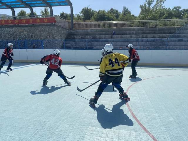 下面我們把視線轉移到冰球場上。運動員們不懼炎熱、奮勇拼搏,每球必爭,啦啦隊在場下高聲加油助威。運動員們對冰球項目無比喜愛的熱情在每一次的拼搶、倒地中展現的淋漓盡致。今后他們定會不斷努力,百尺竿頭更進一步,為鵝坡的冰球項目發展助力。