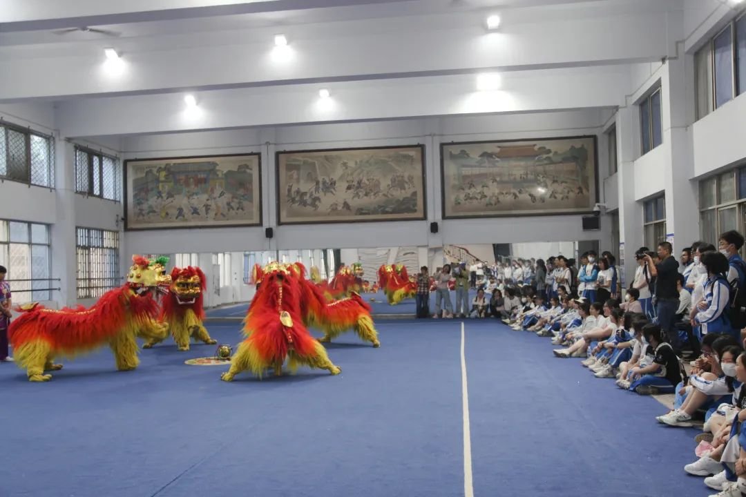 在學校講解員的帶領下,他們走進榮譽室、思源館了解學校的發展歷史、教育教學、人才培養、學校管理等方面的輝煌成就,深入感受鵝坡的文化底蘊。隨后交流團走進訓練房觀看精彩的舞龍舞獅和武術表演。金龍閃轉騰挪,蜿蜒游動;雄獅起舞,威風凜凜,栩栩如生,體現著中華民族特有的精神,展示出團結的力量。童子功、霸王槍、頭開鋼板、銀槍刺喉、十八般兵器輪番上陣,展示了我校學生精湛的專業技能,在場交流團學生掌聲不斷、喝彩連連。看完表演,交流團學生跟隨“小教練”學習了五步拳,親身體驗少林武術的魅力。
