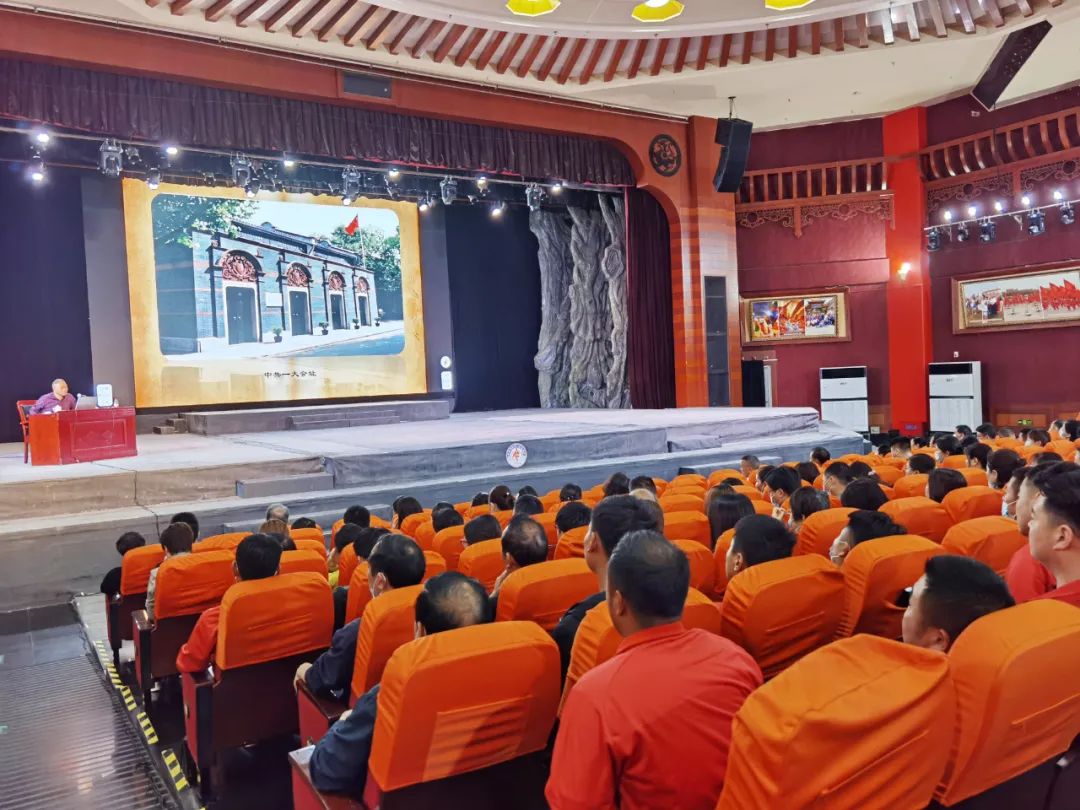 會(huì)議伊始,與會(huì)人員全體起立默哀,向“雜交水稻之父”袁隆平和“中國肝臟外科之父”吳孟超兩位泰斗致敬。接著,李主任以“大浪淘沙 英雄千古”為主題,圍繞平均年齡只有28歲的13位中共一大代表,講述中國百年歷史風(fēng)云,再現(xiàn)了黨的光輝歷程。
